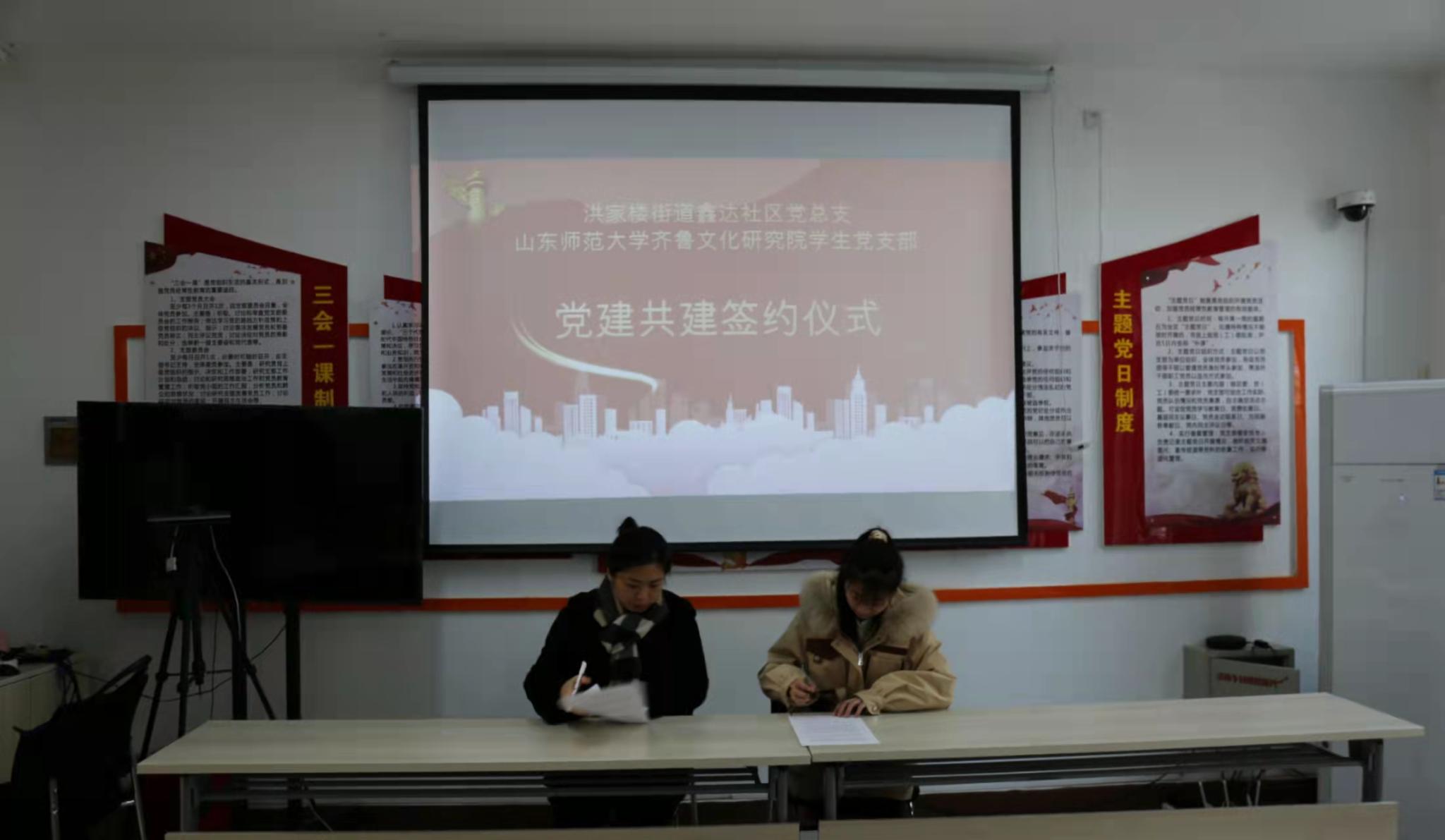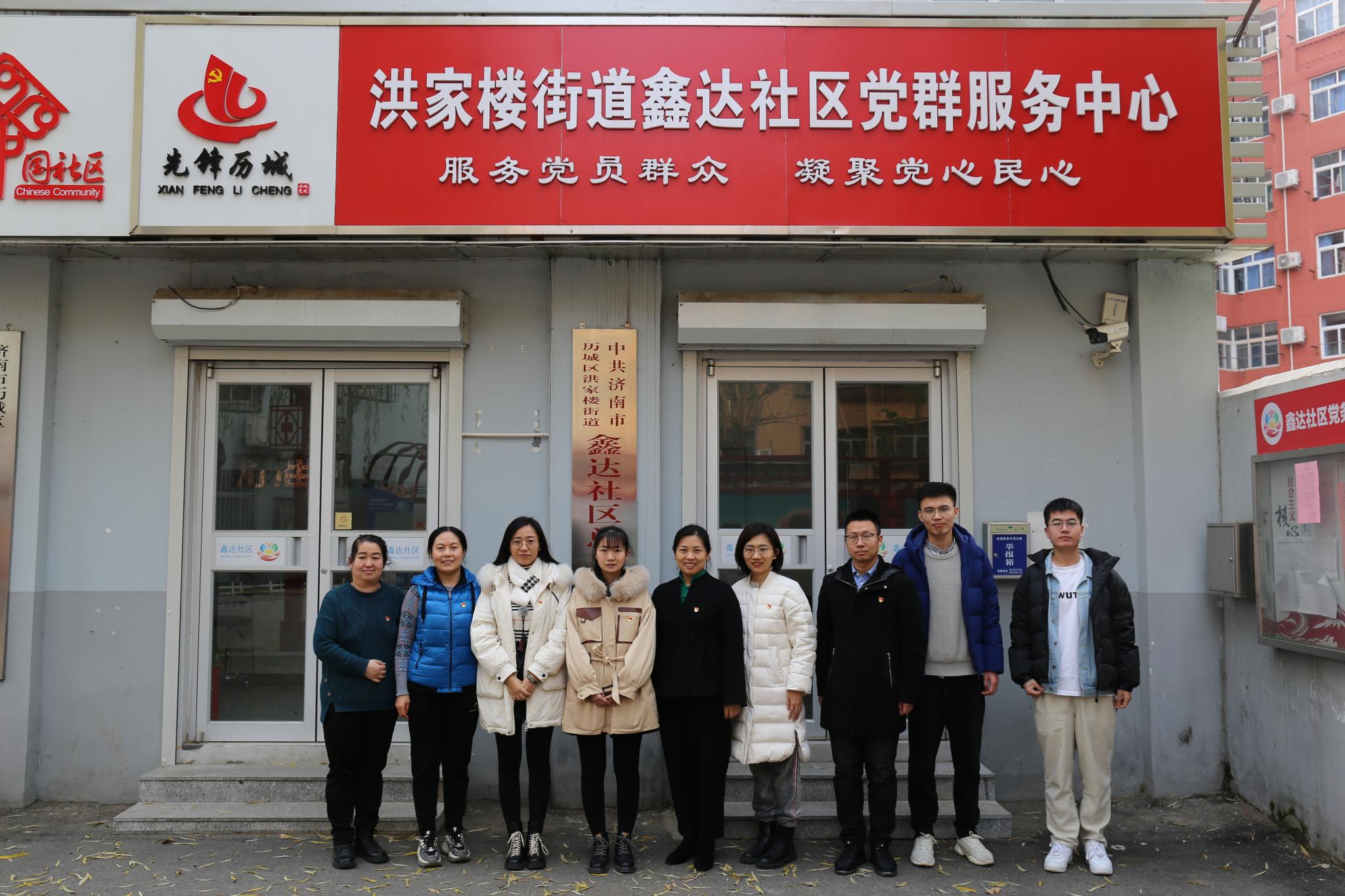为落实新时代党的建设总要求,深化党史学习教育,推动学校和社区互联互动、共驻共建,12月9日,在齐鲁文化研究院学生党支部书记、学生工作办公室主任李莉老师的带领下,山东师范大学齐鲁文化研究院学生党支部与洪家楼街道鑫达社区党总支开展结对共建活动。