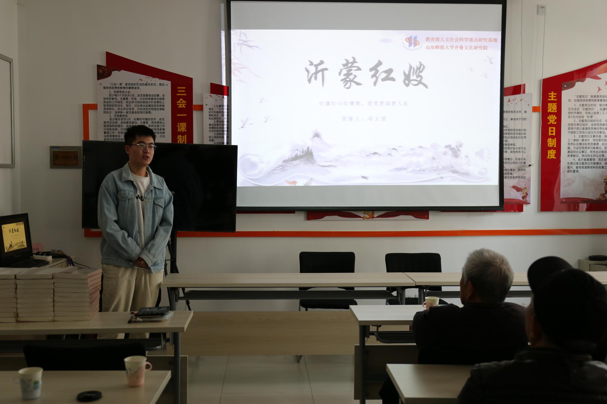 活动中,山东师范大学齐鲁文化研究院学生党支部书记李莉与鑫达社区党总支书记辛亭霖共同签订了《党建共建协议书》,双方本着“党建共建、惠及群众”的理念,共享党建资源,建立互帮、互学、互助的有效机制,以结对共建为契机,推动山东师范大学齐鲁文化研究院学生党支部与鑫达社区党总支共同发展进步。随后,齐鲁文化研究院学生党支部向鑫达社区党总支捐赠了齐鲁文化经典书籍,并进行了图书捐赠仪式。仪式结束后,山东师范师范大学齐鲁文化宣讲团成员刘泽琳、冯文浩为鑫达社区党员宣讲了邓恩铭和沂蒙红嫂的感人事迹,拉开了党建引领共建合作的序幕。