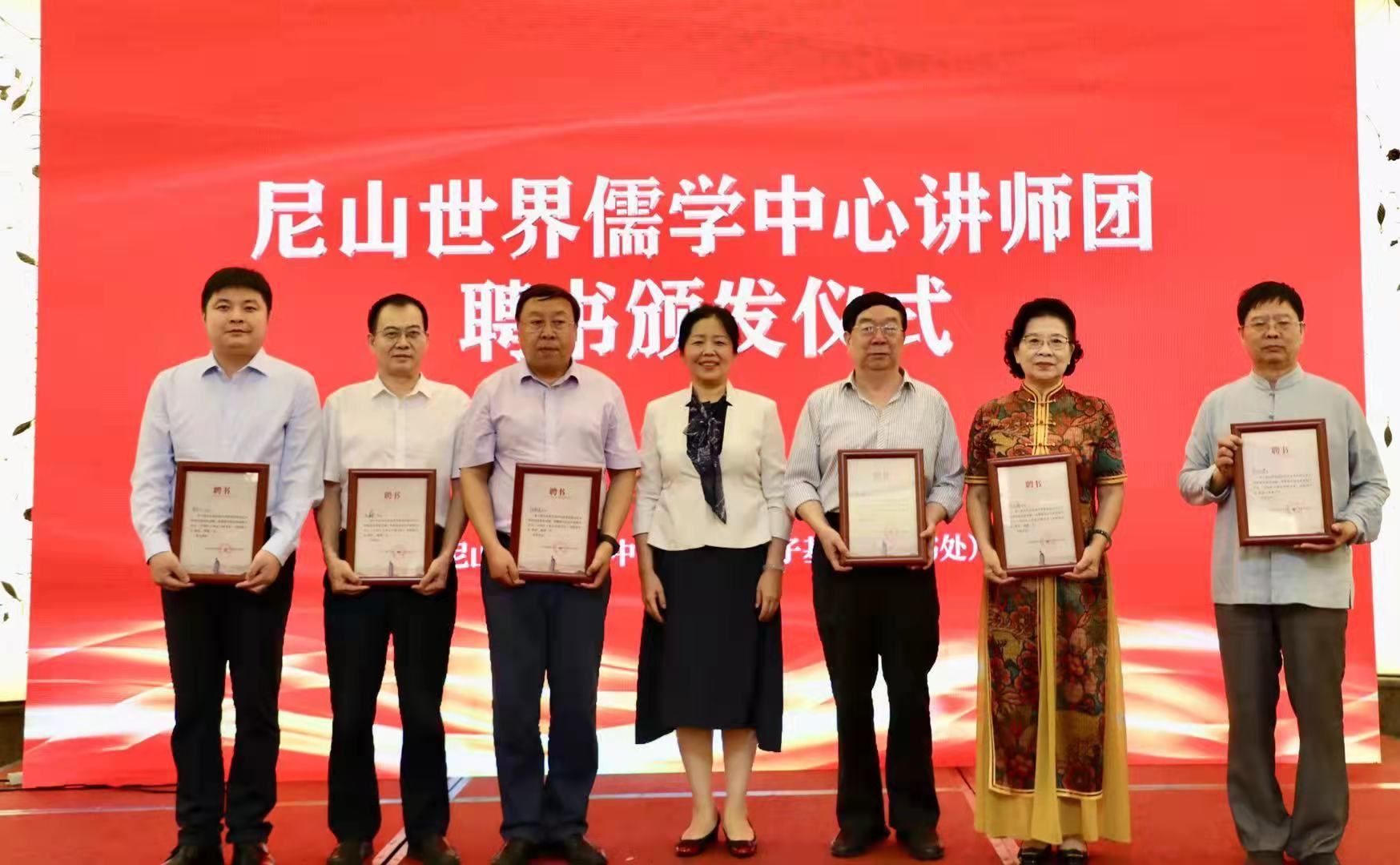 讲师团成立仪式上,国承彦讲师团顾问和部分代表颁发聘书。齐鲁文化研究院副院长、博士生导师吕文明教授作为首批讲师团专家成员参加活动并接受聘书。尼山世界儒学中心首批讲师团由34位专家成员组成,以大力弘扬儒学思想为代表的中华优秀传统文化为着力点,肩负着举旗帜、聚民心、育新人、兴文化、展形象的光荣使命,致力于引领和推动儒家思想和中华优秀传统文化在海内外传播普及,促进世界文明交流互鉴,提升中华文化软实力和国际影响力。