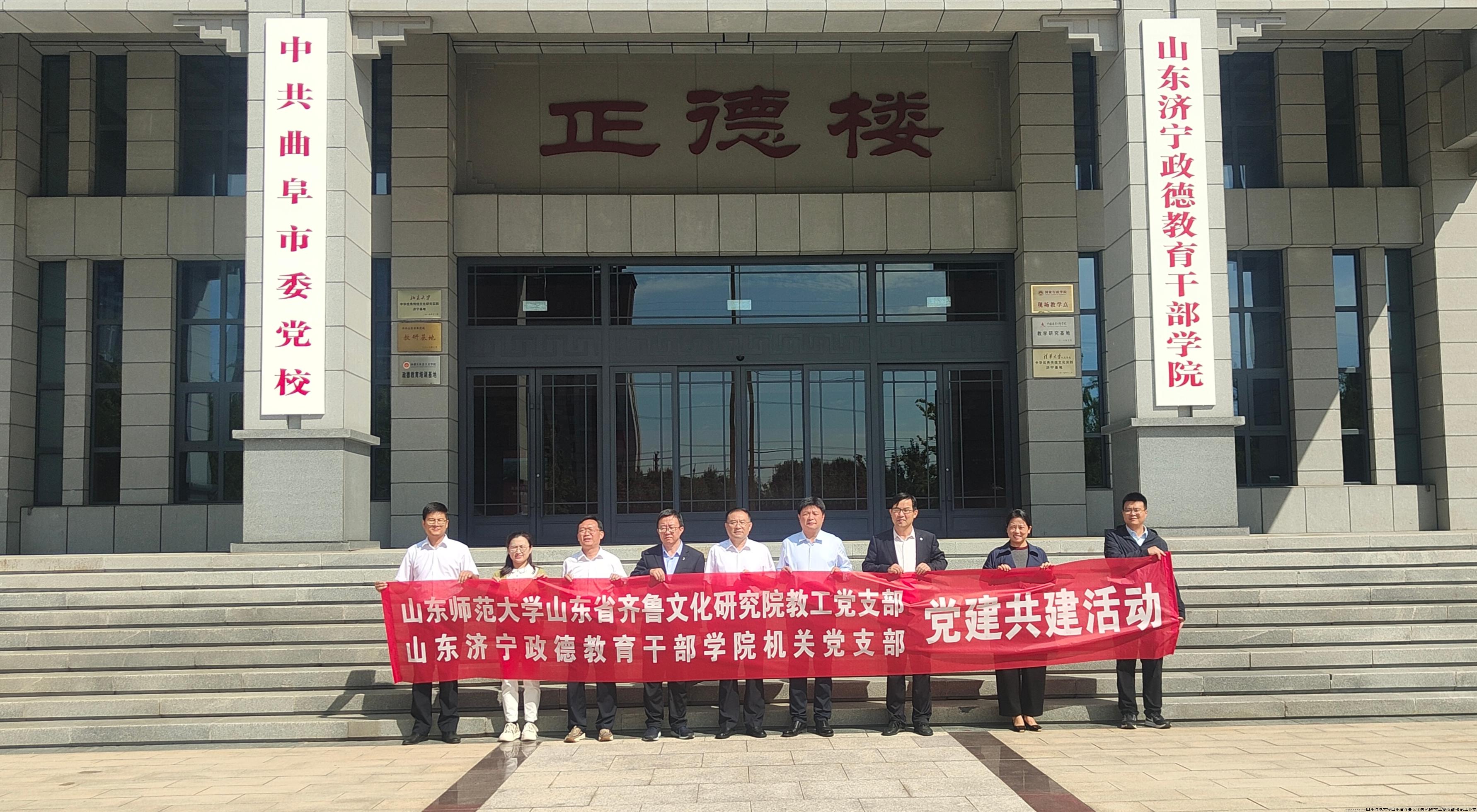 签约仪式完成后,山东师范大学山东省齐鲁文化研究院教工党支部与山东济宁政德教育干部学院机关党支部开展联合党建活动,双方党支部成员共同到山东济宁政德教育干部学院教学点进行学习交流,收到良好效果。