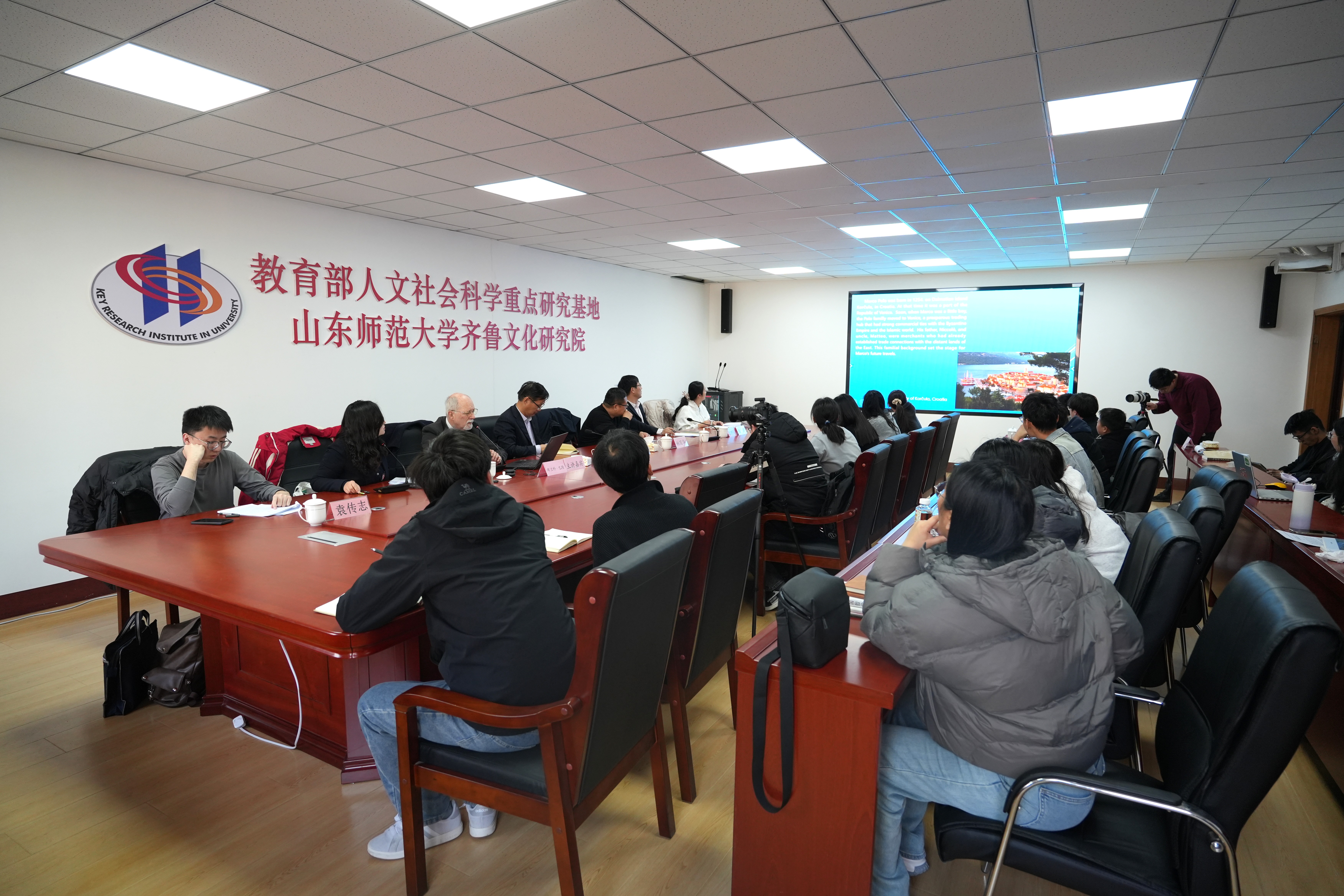 2月20日下午,齐鲁文化研究院文明交流互鉴名家讲坛启动仪式暨第一讲“马可波罗与现代丝绸之路”举行,论坛由教育部人文社会科学重点研究基地山东师范大学齐鲁文化研究院、尼山世界儒学中心山东师范大学研究基地主办。讲座由克罗地亚—中国友好协会主席、克罗地亚萨格勒布ALGEBRA大学教授、“齐鲁访学驻研计划”访问学者布兰科·巴隆教授主讲。齐鲁文化研究院吕文明院长、颜春杰书记和尼山世界儒学中心学术研究与文献期刊部林国华副部长出席此次活动。副院长张磊主持讲座。刘琛、何圆担任翻译。齐鲁文化研究院师生参加了此次讲座。