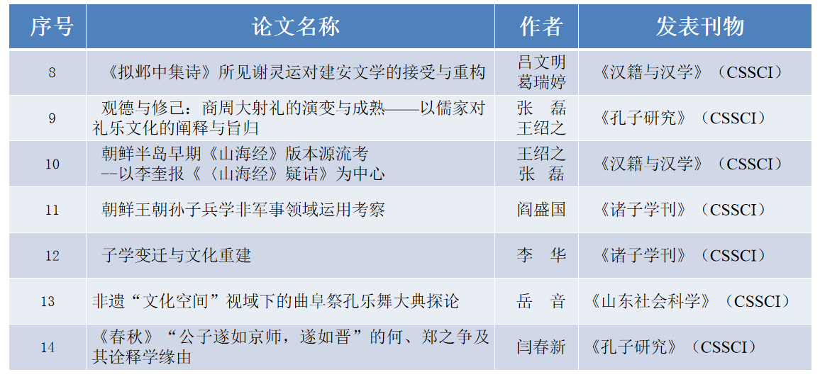 积极推进学科建设,联合历史文化学院成功申报中国史博士一级学科。获批山东省社科规划特别委托重大项目1项,山东省社科规划一般项目5项,山东省高等学校哲学社会科学研究项目2项,贵州省哲学社会科学规划国学单列课题1项,济南市校融合发展战略工程项目1项,经费总额300余万元。获B级智库成果1项。发表E级及以上高层次学术论文29篇。出版著作12部。主办重要学术会议6次。