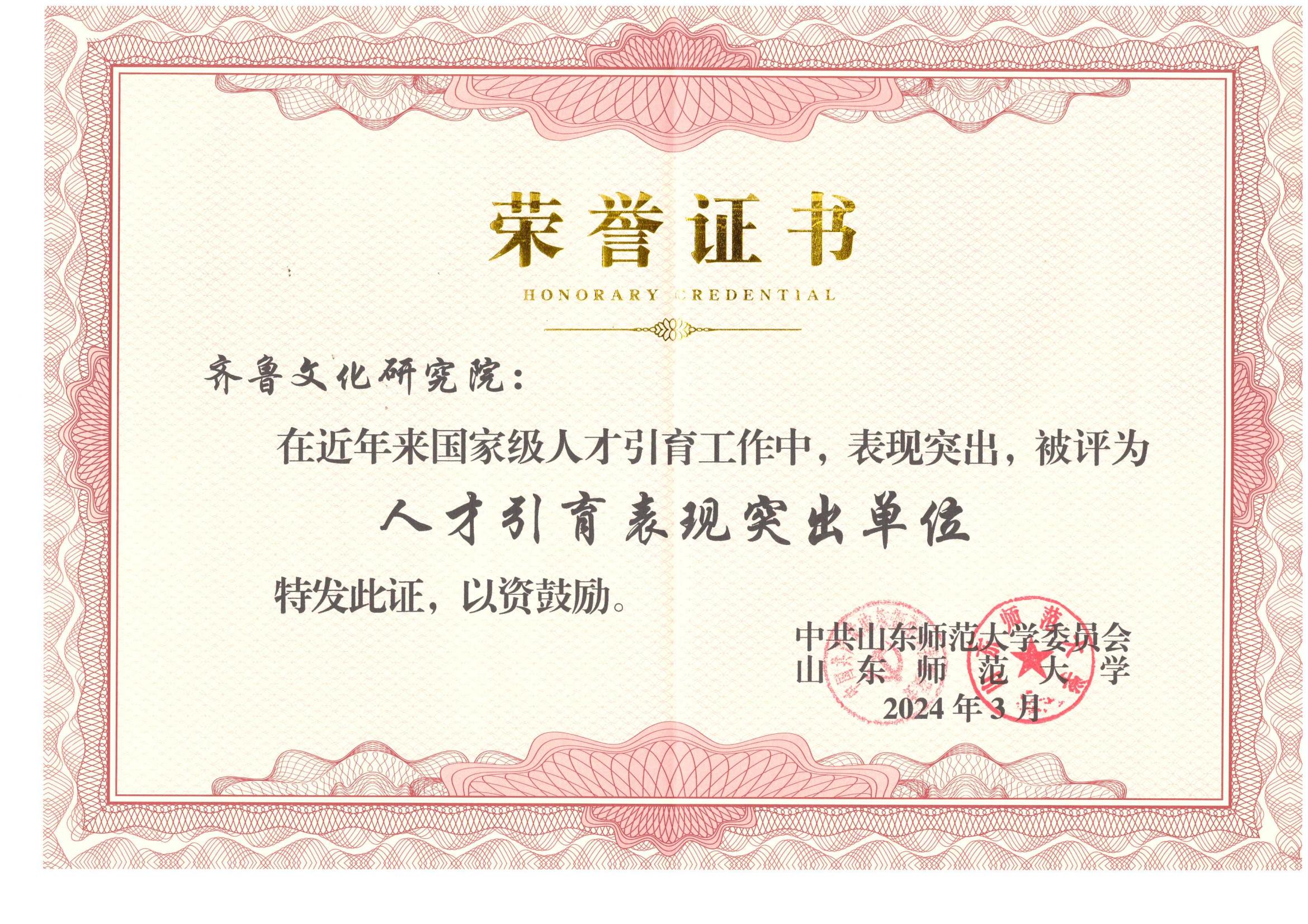 1月11日上午,学校2024年度高质量发展总结表彰大会在千佛山校区大礼堂隆重举行。齐鲁文化研究院荣获学校高质量发展“突出贡献奖”。