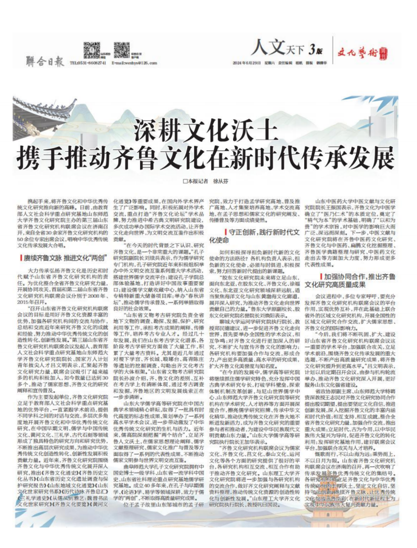 展望未来,齐鲁文化研究院将继续在学校党委、行政的正确领导下,围绕学校“一一五五”发展思路,聚焦特色研究领域,凝心聚力,守正创新,以更加昂扬的奋斗姿态和更加务实的工作作风稳步前进,开创基地建设发展新局面,为推动学校“双一流”建设和高质量发展贡献积极力量。