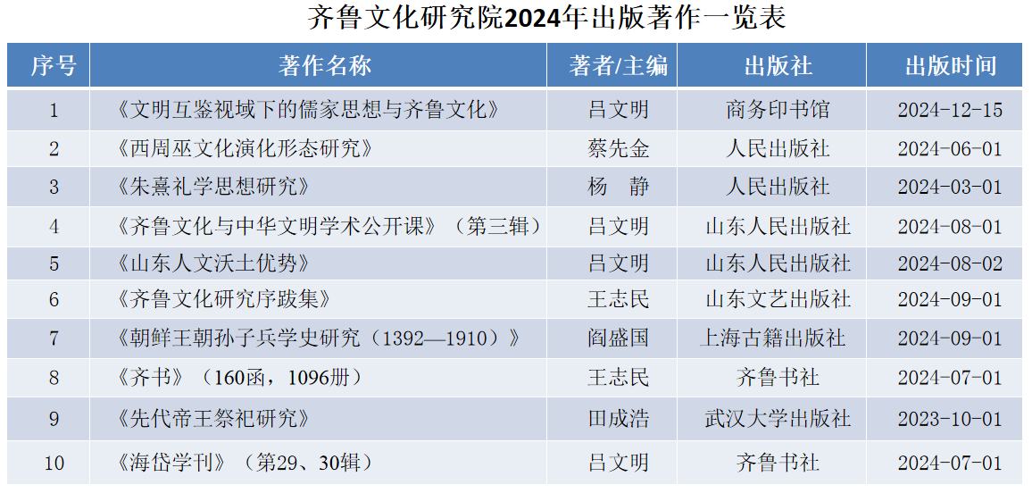 2024年,是齐鲁文化研究院建设发展中具有重要意义的一年,也是落实基地“十四五”规划的关键一年。这一年,在学校党委行政的领导下,在学校各部门的支持下,齐鲁文化研究院围绕学校“双一流”建设和基地建设,全力推进党建思政、学术研究、平台建设、人才引育、文化“两创”等工作,取得显著成效。