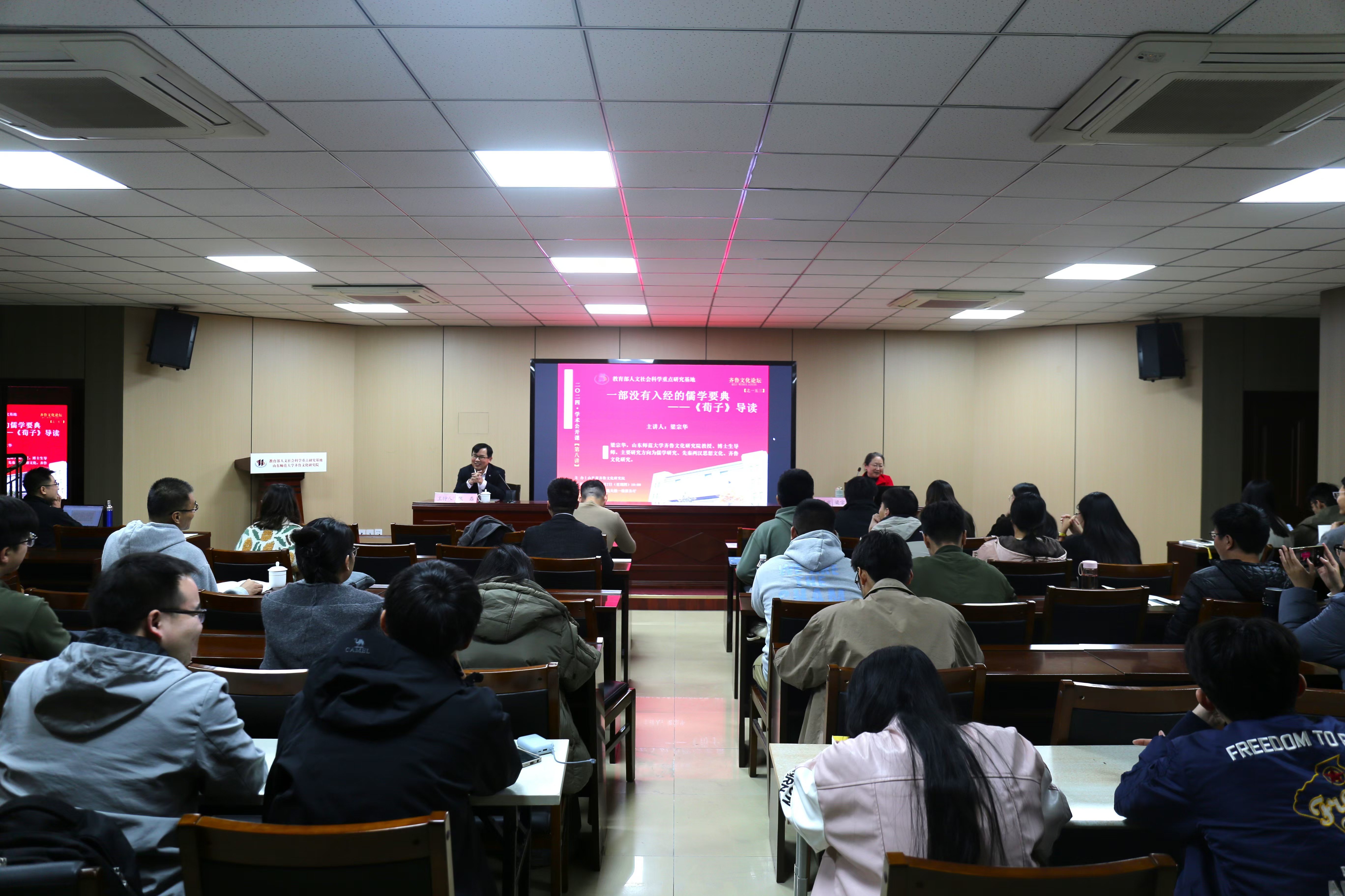 11月7日晚,由教育部人文社会科学重点研究基地山东师范大学齐鲁文化研究院主办的“齐鲁文化与中华文明”学术公开课第八讲暨齐鲁文化论坛第一五三期《一部没有入经的儒学要典——<荀子>导读》,在山东师范大学千佛山校区逸夫楼报告厅举行。本次公开课由齐鲁文化研究院博士生导师梁宗华教授担任主讲嘉宾,齐鲁文化研究院师生、千佛山校区部分本科生参加了本次讲座。讲座由齐鲁文化研究院副院长张磊教授主持。