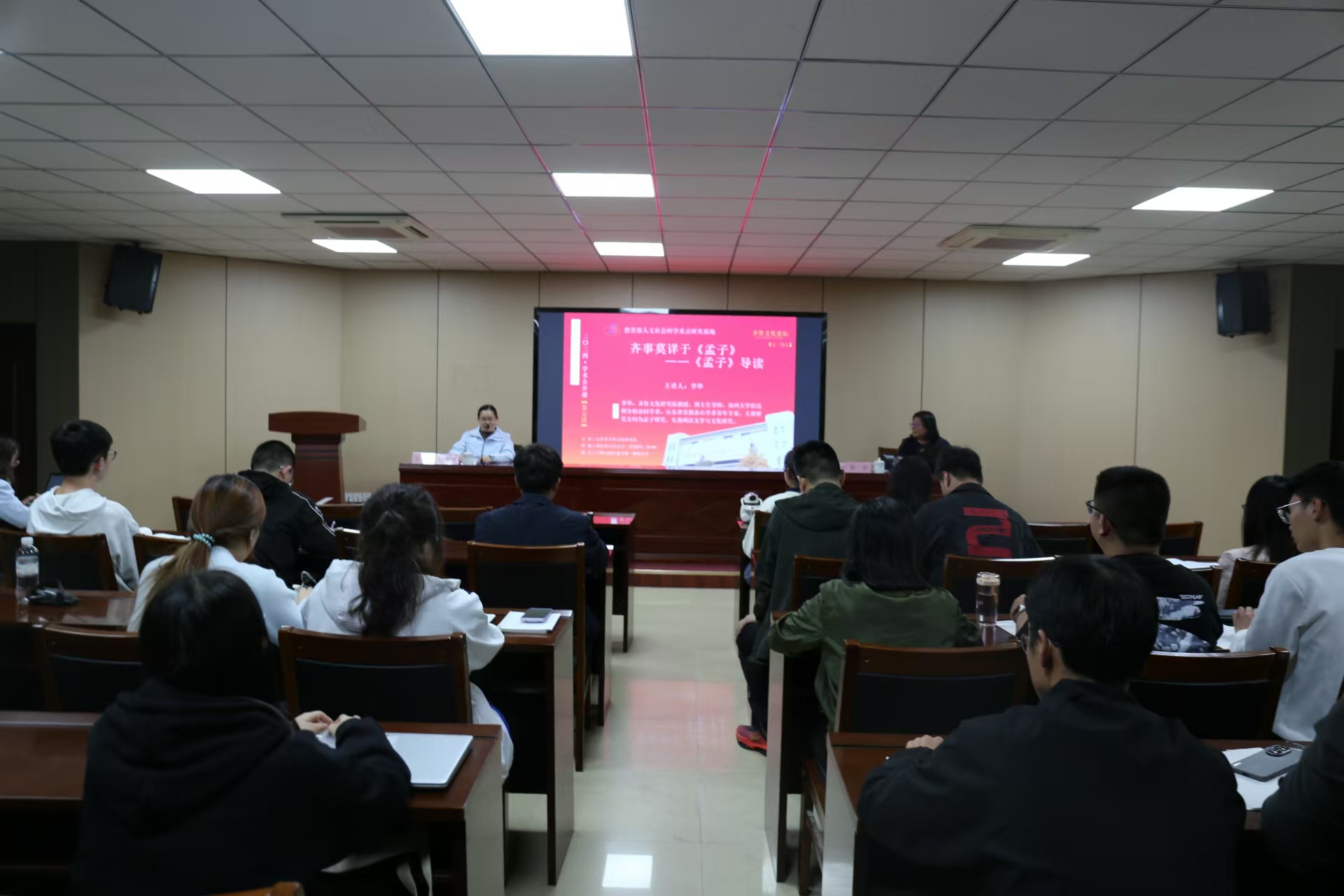 10月17日晚,由教育部人文社会科学重点研究基地山东师范大学齐鲁文化研究院主办的“齐鲁文化与中华文明”学术公开课第五讲暨齐鲁文化论坛第一百四十九期《齐事莫详于<孟子>——<孟子>导读》,在山东师范大学千佛山校区逸夫楼报告厅举行。本次公开课由齐鲁文化研究院博士生导师李华教授担任主讲嘉宾,齐鲁文化研究院师生、千佛山校区部分本科生参加了本次讲座。讲座由区域文化与中国文学教研室主任、博士生导师刘爱敏教授主持。