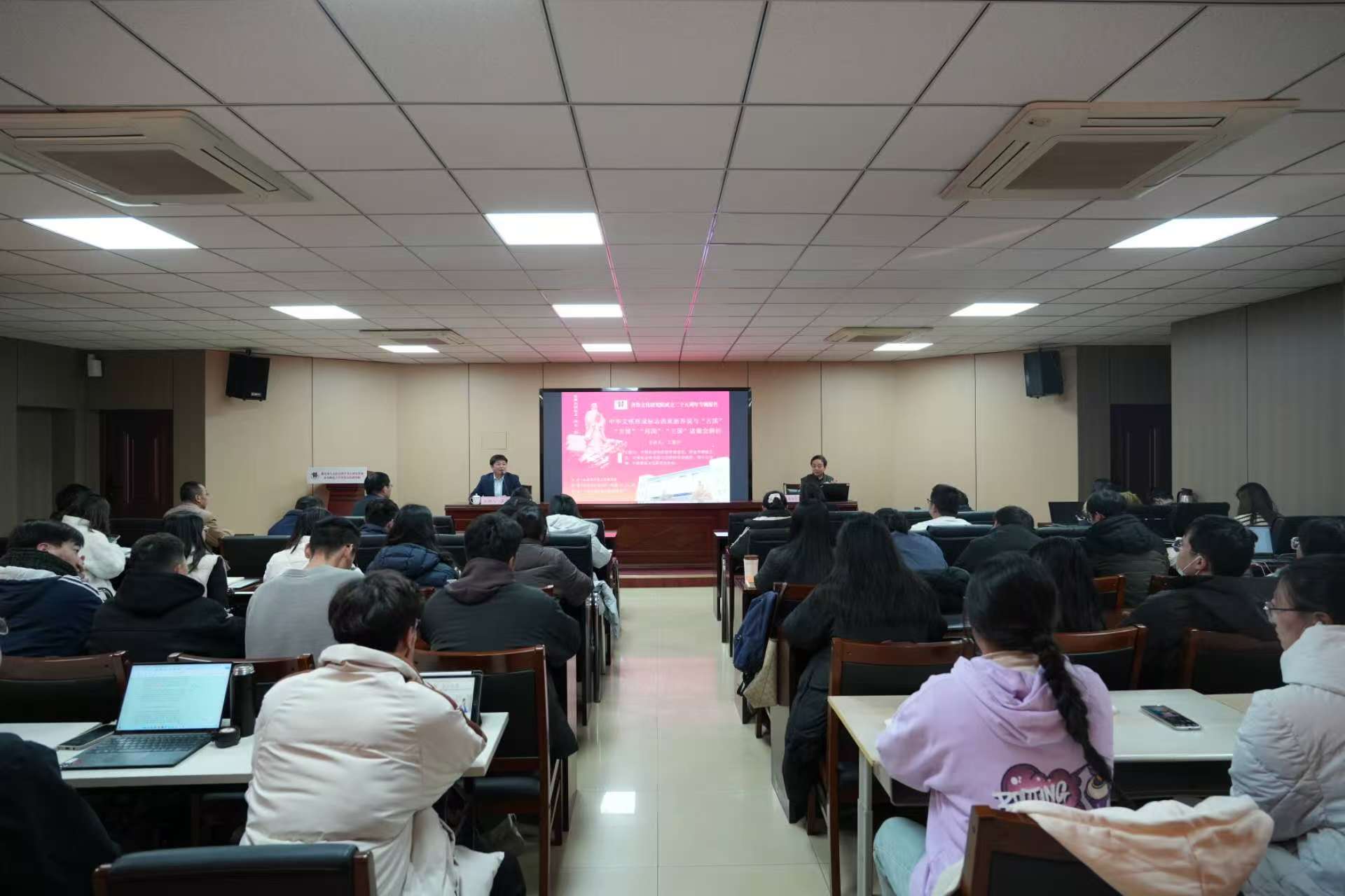 12月17日下午,齐鲁文化研究院成立二十五周年专题讲座、社科大讲坛第一四七二期《中华文明形成标志的重新界说与“古国”“方国”“邦国”“王国”诸概念辨析》,在山东师范大学千佛山校区逸夫楼报告厅举行。本次报告由中国社会科学院学部委员王震中教授担任主讲嘉宾,齐鲁文化研究院师生参加了本次讲座。讲座由齐鲁文化研究院院长吕文明教授主持。