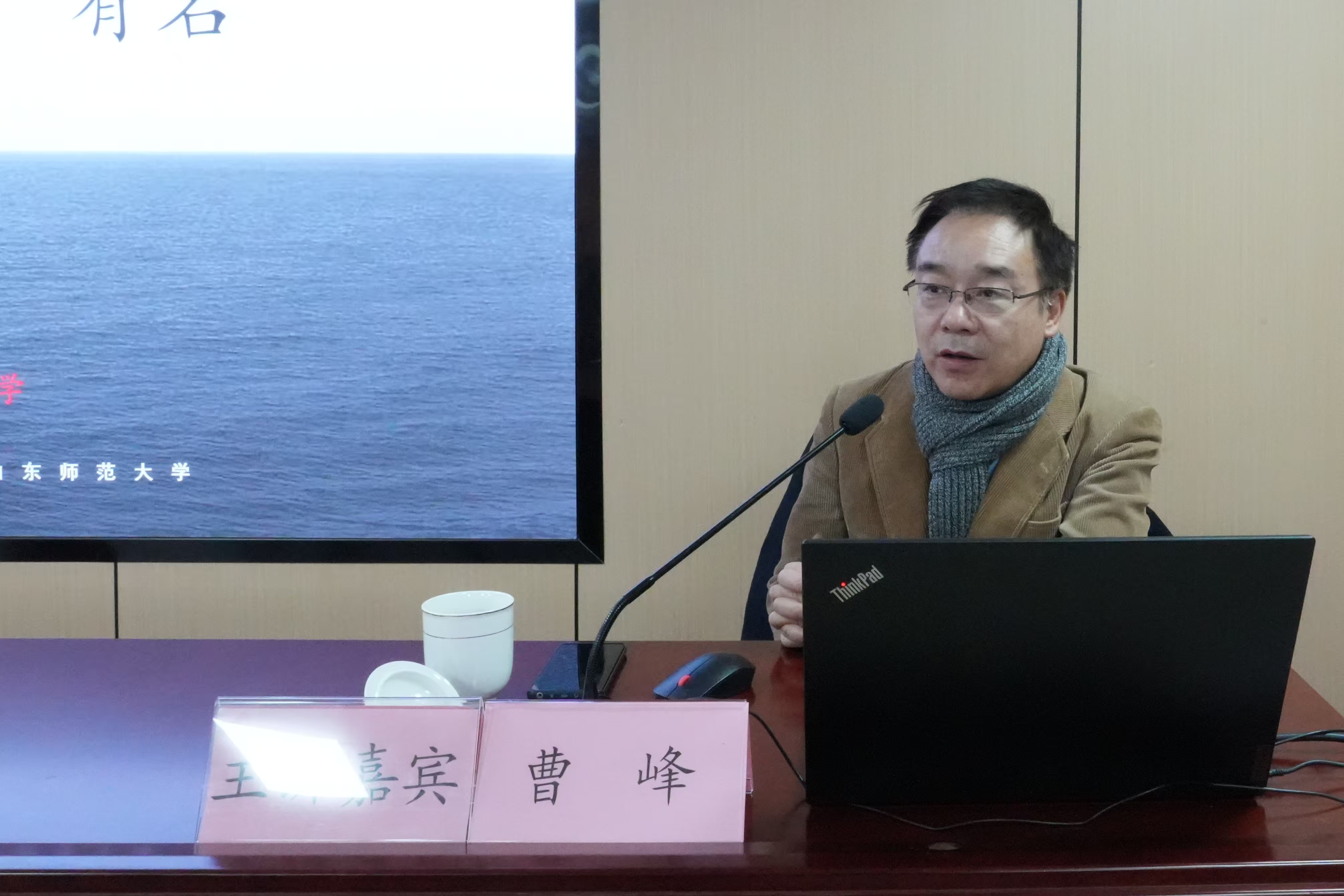 12月16日下午,齐鲁文化研究院成立二十五周年专题报告、社科大讲坛第一四七一期《道家的“无名”与“有名”》在山东师范大学千佛山校区逸夫楼报告厅举行,本次报告由中国人民大学教授、“长江学者”特聘教授曹峰担任主讲嘉宾,齐鲁文化研究院师生参加了本次讲座。讲座由齐鲁文化研究院刘爱敏教授主持。本次活动是庆祝齐鲁文化研究院成立二十五周年的系列活动之一。