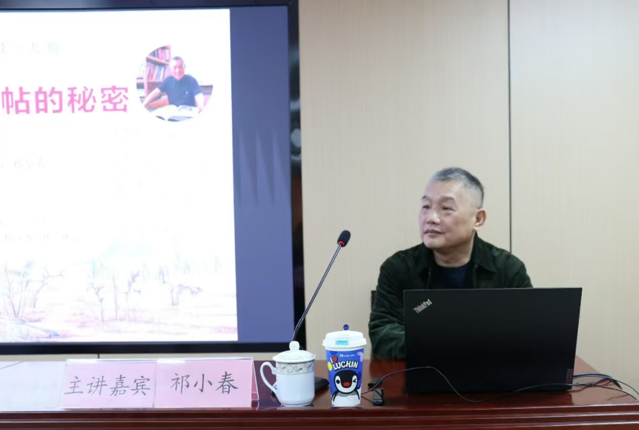 祁小春教授的讲座主要围绕他的研究领域、研究案例、研究心得展开。第一,研究领域。祁教授的研究长期围绕王羲之展开。《迈世之风:有关王羲之资料与人物的综合研究》《顿还旧观:以王羲之为中心的魏晋尺牍法帖研究》等,是祁小春教授研究王羲之其人及其书迹的重要著作。祁教授还从日本中国书法史研究、古籍版刻书法研究角度介绍了他的研究领域。第二,研究案例。祁教授以《〈兰亭序〉的“揽”字与六朝士族的避讳》《〈十七帖〉为何阙“月日名白”》等为案例讲述了提出问题、论证过程以及得出的结论,并且分享了一些有待进一步研究的新问题。第三,研究心得。祁教授侧重于从历史、文献的角度进行研究,认为应以究明史实真相并寻找出其规律性为终极目的。他认为,要注重书法史周边的文化现象;要关注和利用相关学科的研究成果;要利用新资料,开拓研究范围;要注重基础研究,对资料细读深究,善于发现问题。除上述之外,他还讲述了学术规范问题、治学体会与感言。