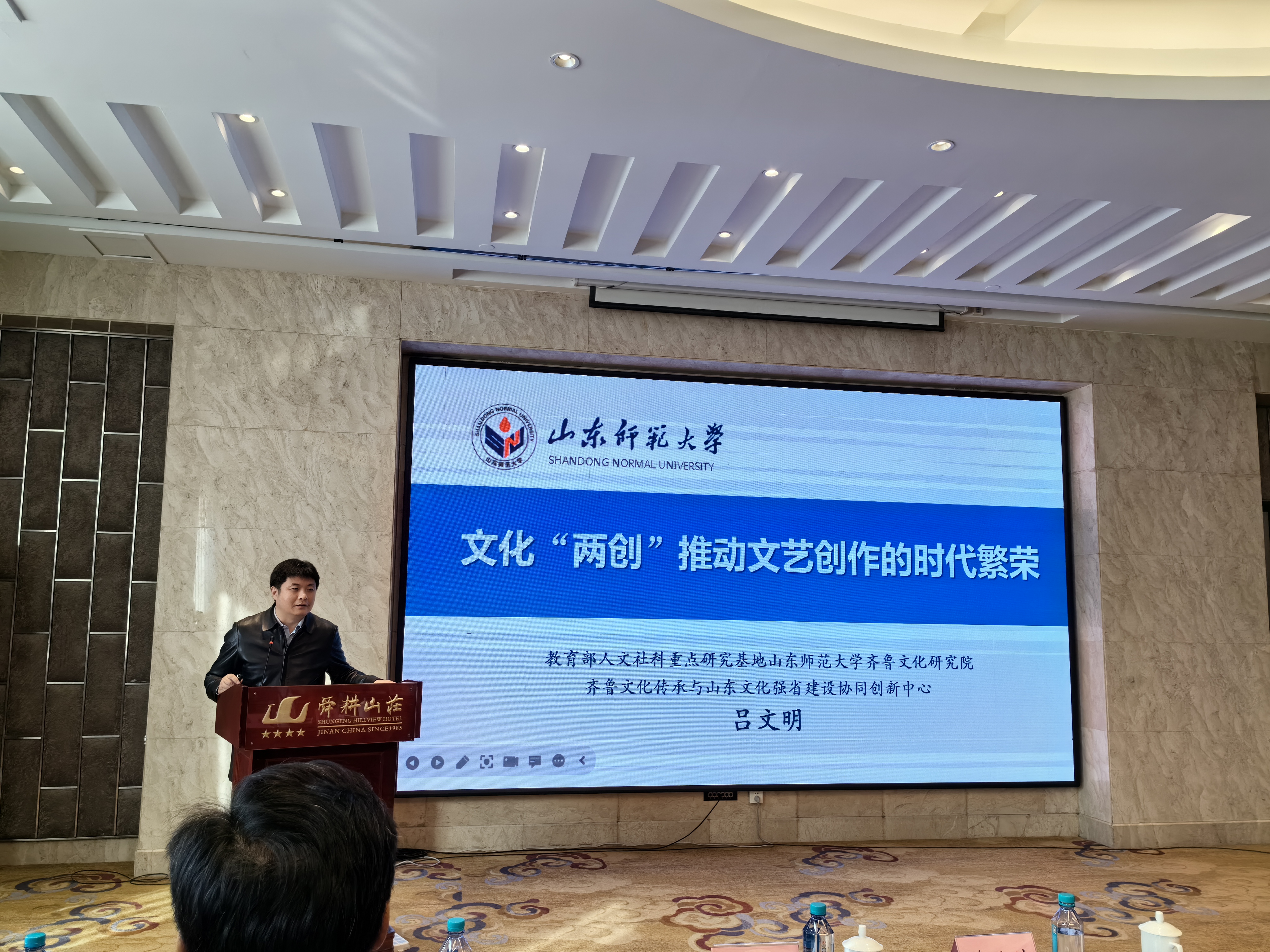 近日,由山东省文艺评论家协会、中国文艺评论(山东大学)基地、山东省艺术研究院、山东省文艺创作研究院联合主办的“习近平文化思想与新时代山东文艺高质量发展”学术研讨会在山东济南举行。会议主要围绕习近平文化思想与新时代山东文艺创作、新时代山东文艺发展的成就与经验、山东文艺人才培养与文艺领军人才队伍建设等议题展开。研讨会分两个阶段进行,分别由省评协主席、中国文艺评论(山东大学)基地主任范玉刚和省评协驻会副主席兼秘书长王之明主持。山东师范大学齐鲁文化研究院院长、博士生导师吕文明教授参加会议并作主旨发言。